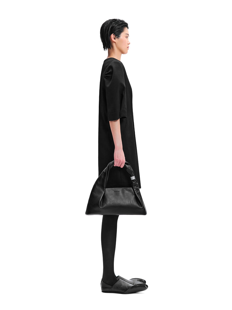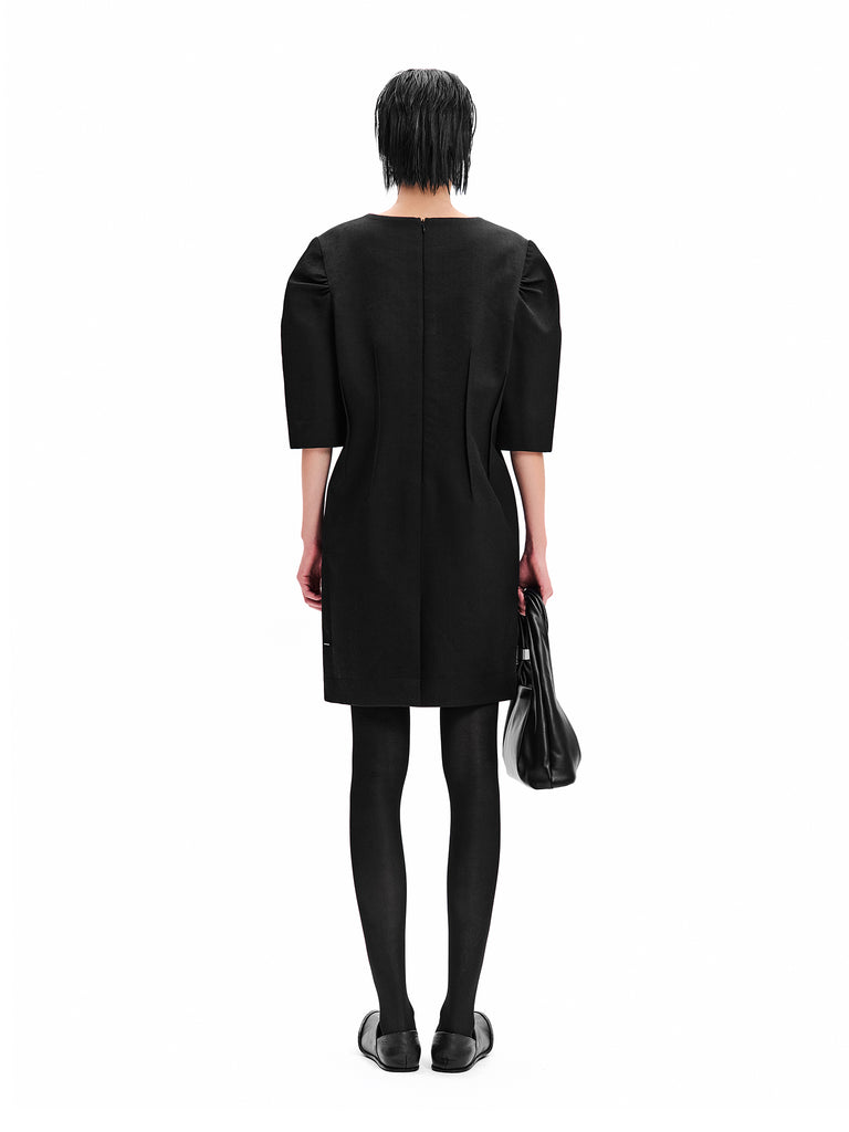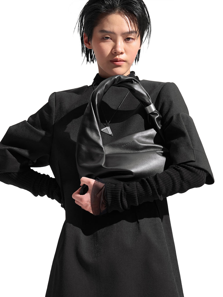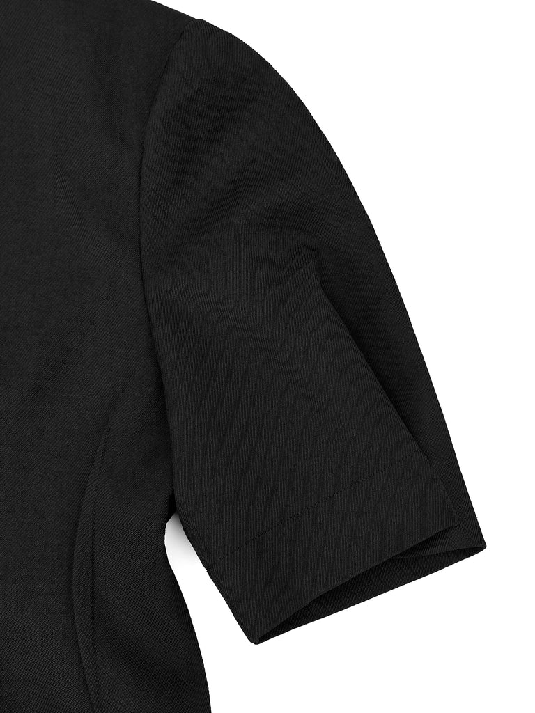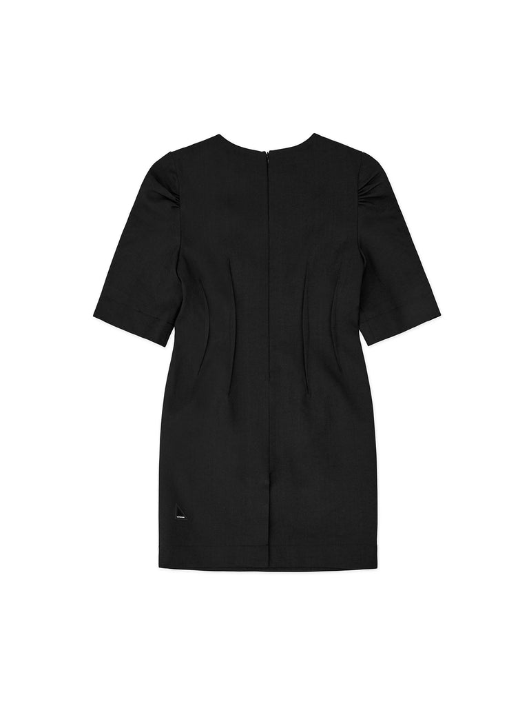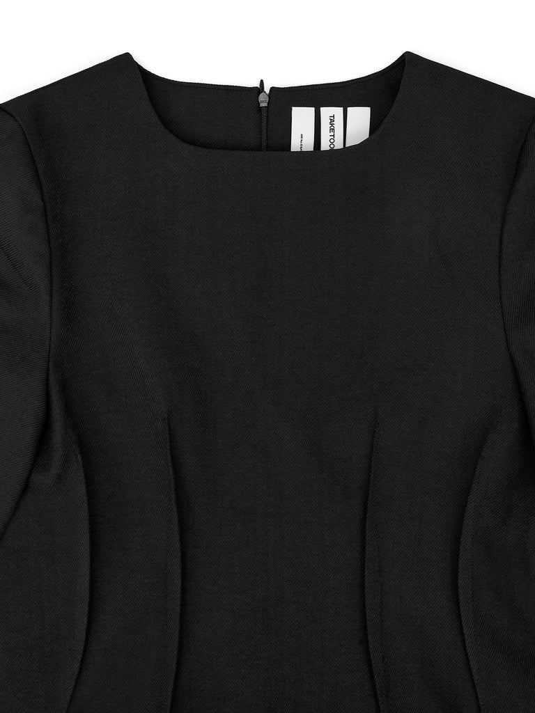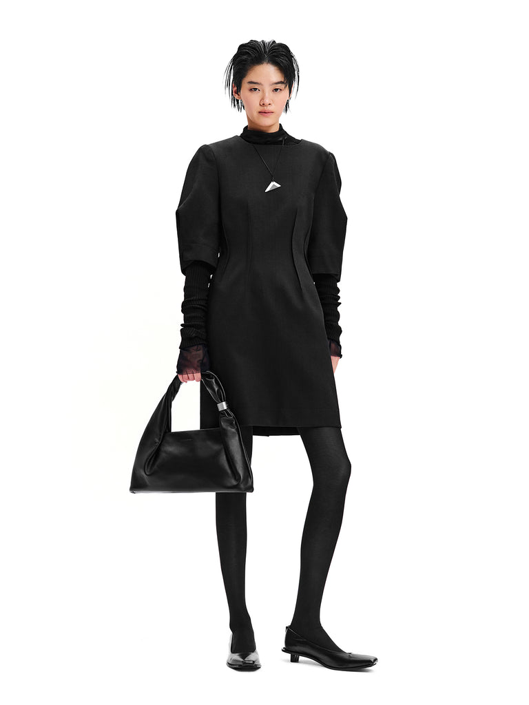 비대칭으로 접힌 턱 스티치 퍼프 소매
