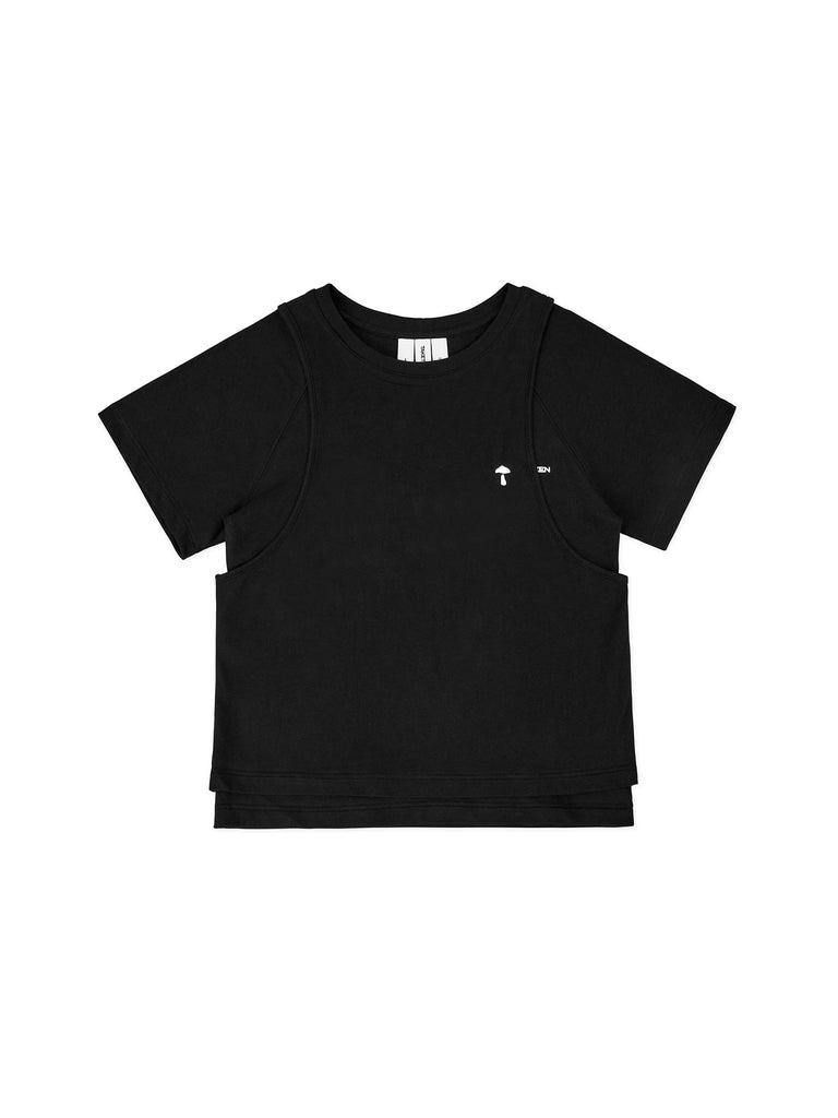 레글런 티셔츠와 민소매 레이어드 디자인