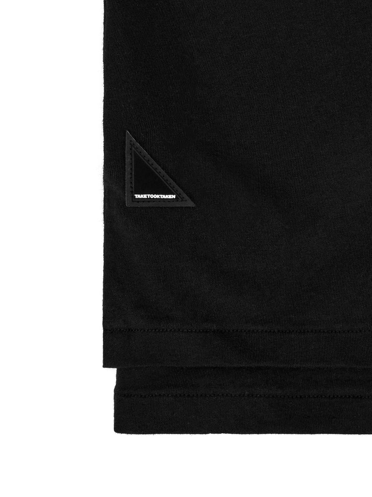 왼쪽 가슴에 겹쳐진 레이어드 플록 프린트 로고